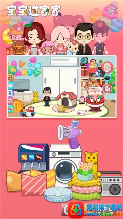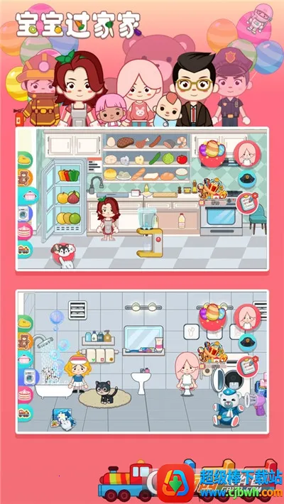 宝宝过家家最新手机版是一款儿童向休闲益智游戏。采用Q版卡通画面与柔和色彩,操作简单易上手。玩家能为角色换装、选多种角色与场景探索互动,完成任务得小红花,还有彩蛋与小游戏,锻炼能力又添乐趣。