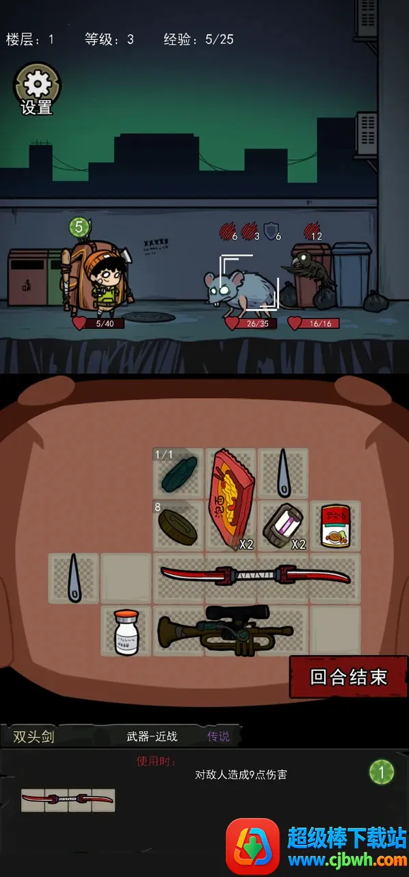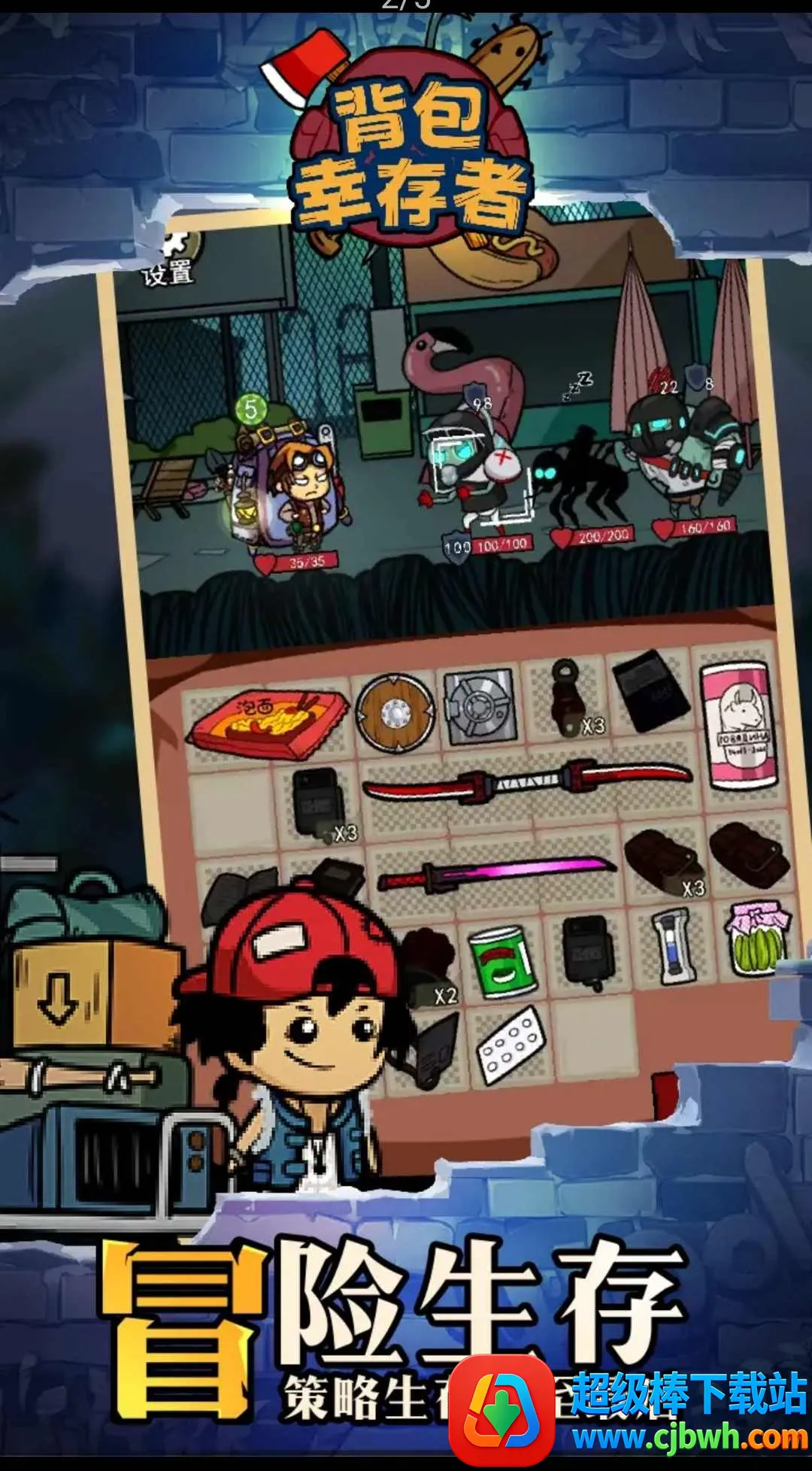 背包幸存者是冒险生存类物品管理手游,采用Q萌画风。玩家扮演幸存者,在末日冒险,以背包管理为核心,收集物品武器,合成神器,应对敌人,解锁新关卡,还有多种角色可选,快来开启冒险。