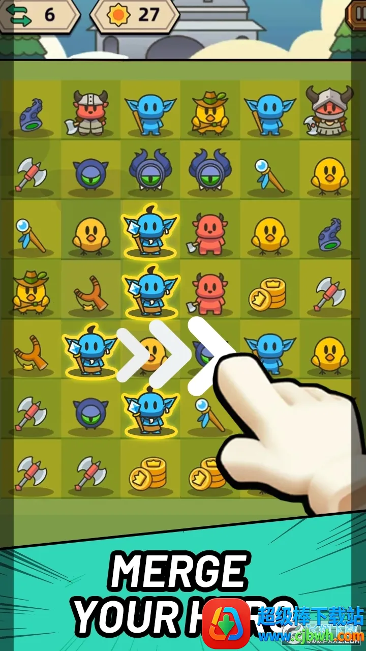 1. 合成英雄:玩家可通过三消合成不同类型英雄,组建战斗小队,在有限步数内合成高等级英雄,提升战斗能力。